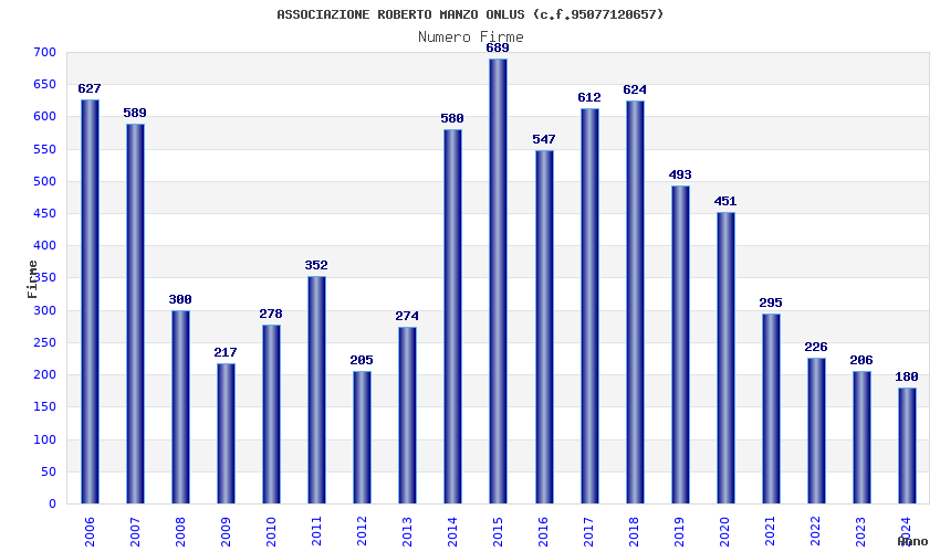 | Anno | Firme | Importi | Media | Naz. | Reg. | Prov. | Comu. |