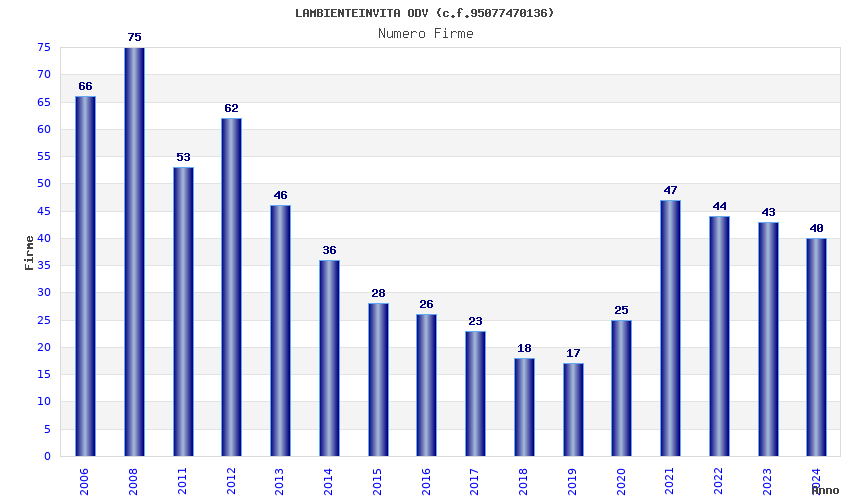 | Anno | Firme | Importi | Media | Naz. | Reg. | Prov. | Comu. |