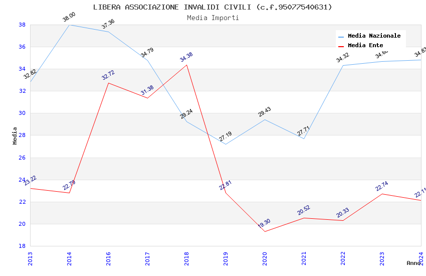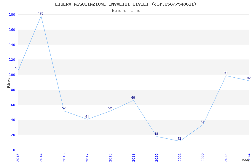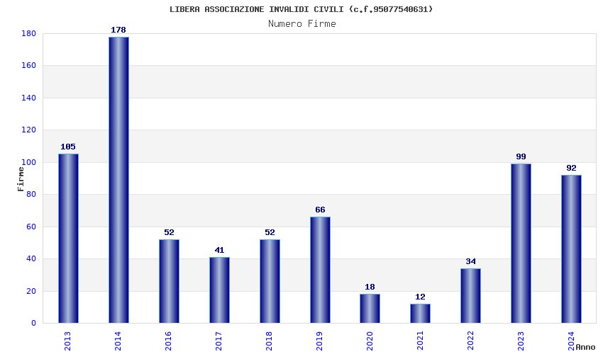 | Anno | Firme | Importi | Media | Naz. | Reg. | Prov. | Comu. |
