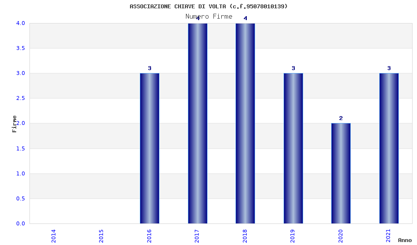| Anno | Firme | Importi | Media | Naz. | Reg. | Prov. | Comu. |