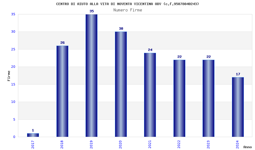 | Anno | Firme | Importi | Media | Naz. | Reg. | Prov. | Comu. |