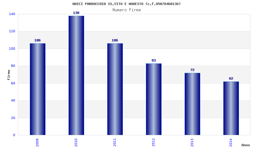 | Anno | Firme | Importi | Media | Naz. | Reg. | Prov. | Comu. |