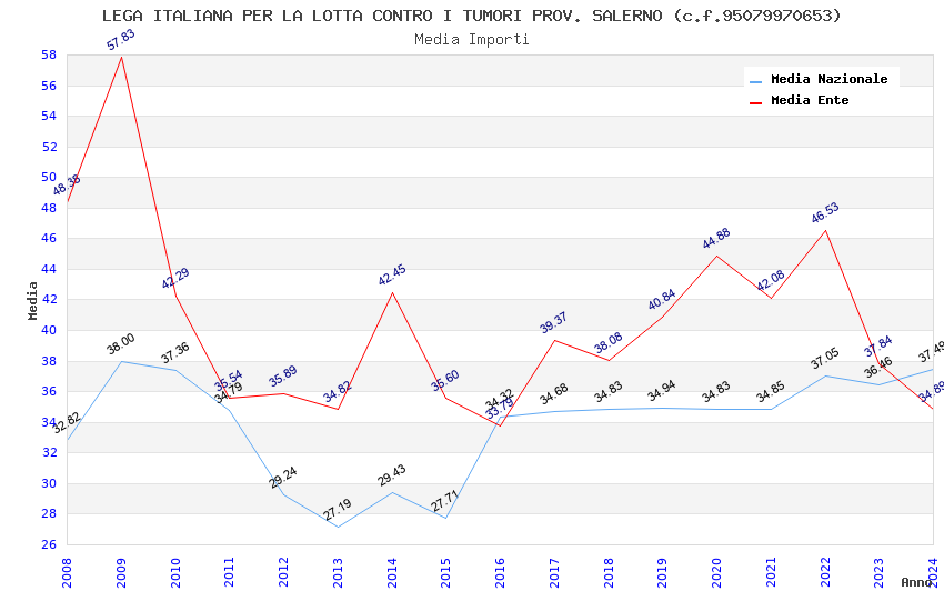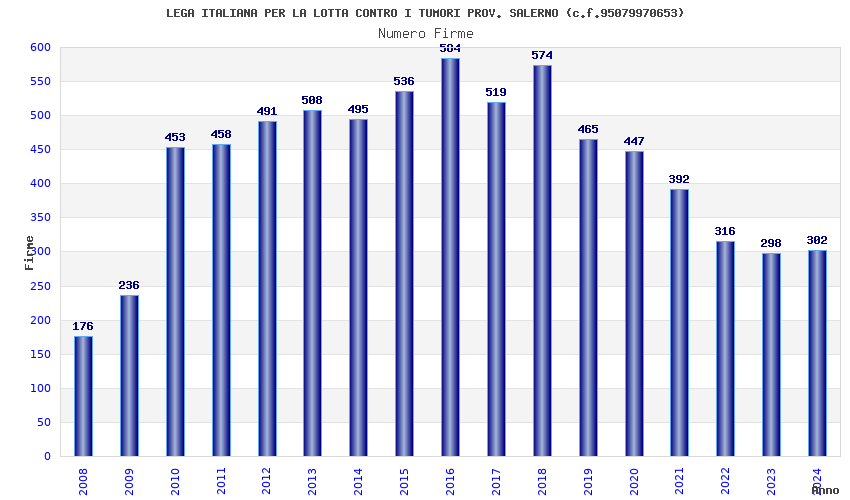 | Anno | Firme | Importi | Media | Naz. | Reg. | Prov. | Comu. |