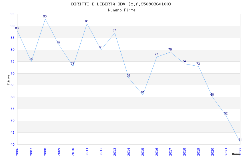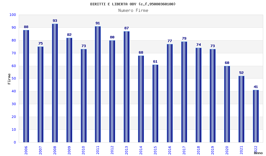 | Anno | Firme | Importi | Media | Naz. | Reg. | Prov. | Comu. |