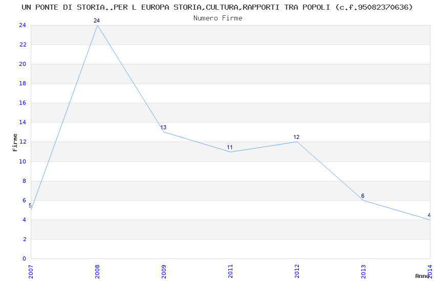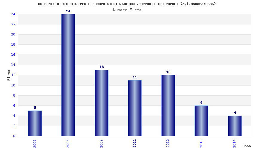 | Anno | Firme | Importi | Media | Naz. | Reg. | Prov. | Comu. |