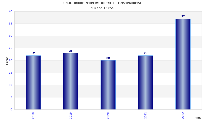 | Anno | Firme | Importi | Media | Naz. | Reg. | Prov. | Comu. |