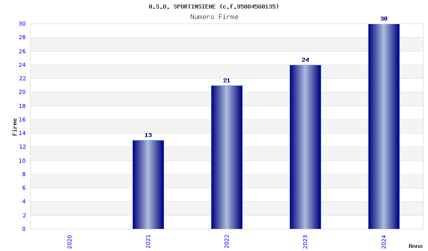| Anno | Firme | Importi | Media | Naz. | Reg. | Prov. | Comu. |