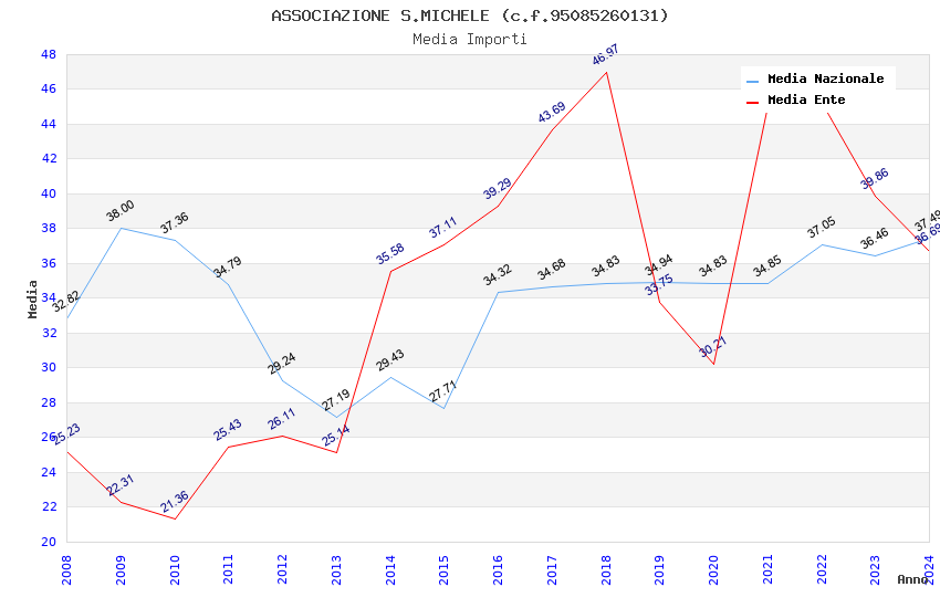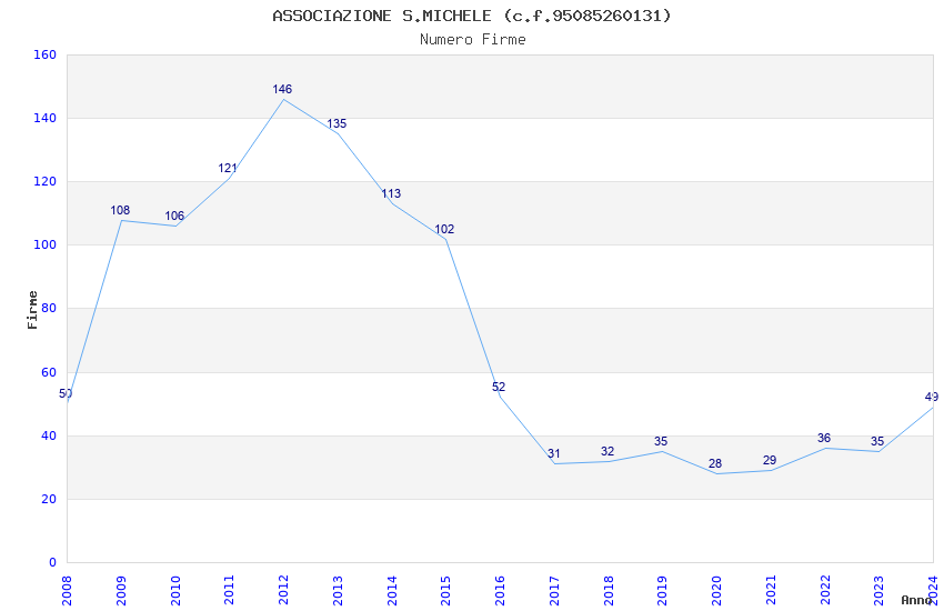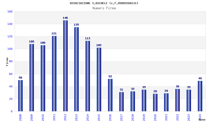 | Anno | Firme | Importi | Media | Naz. | Reg. | Prov. | Comu. |