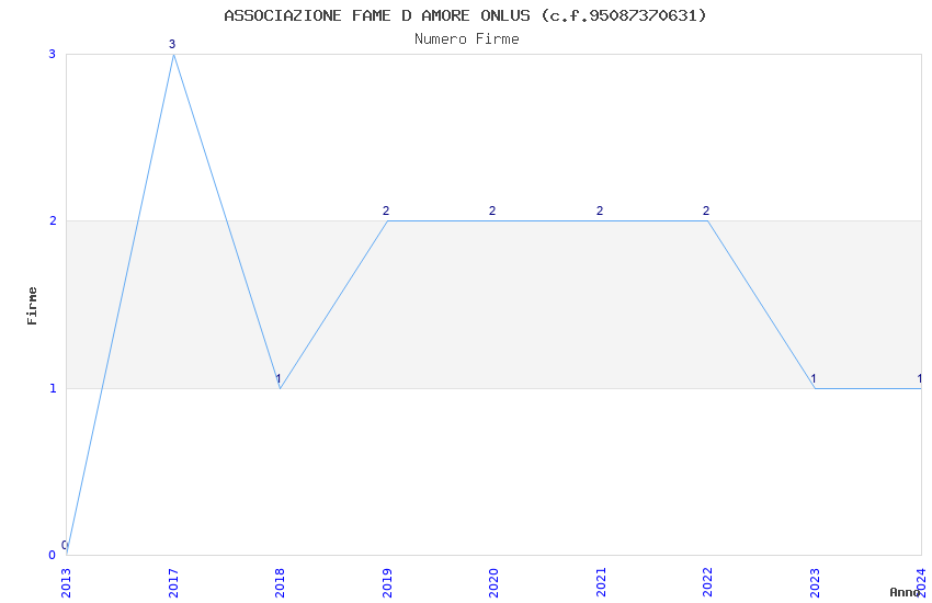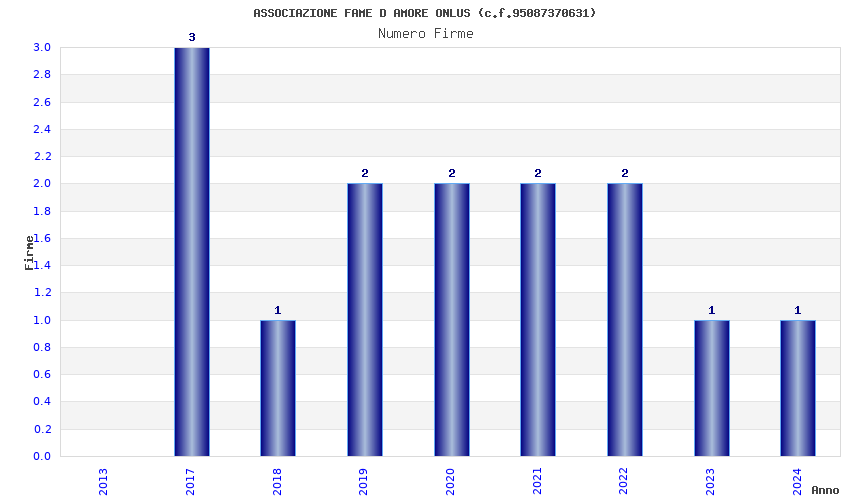 | Anno | Firme | Importi | Media | Naz. | Reg. | Prov. | Comu. |