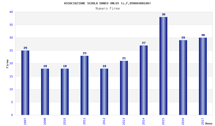 | Anno | Firme | Importi | Media | Naz. | Reg. | Prov. | Comu. |