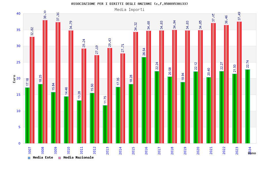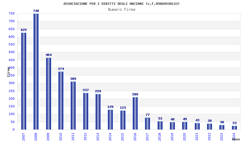 | Anno | Firme | Importi | Media | Naz. | Reg. | Prov. | Comu. |