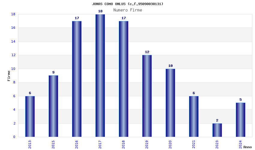 | Anno | Firme | Importi | Media | Naz. | Reg. | Prov. | Comu. |