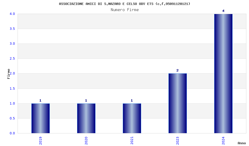 | Anno | Firme | Importi | Media | Naz. | Reg. | Prov. | Comu. |