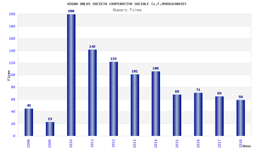 | Anno | Firme | Importi | Media | Naz. | Reg. | Prov. | Comu. |