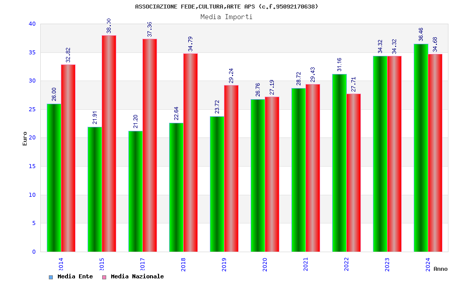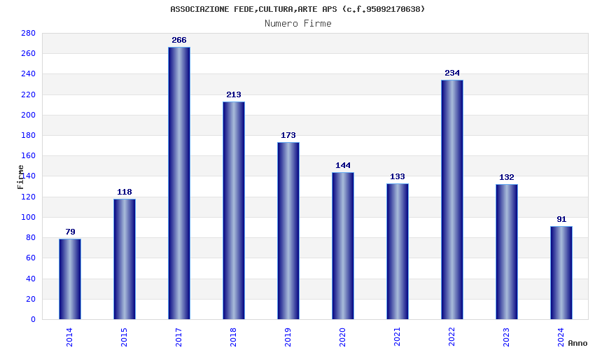 | Anno | Firme | Importi | Media | Naz. | Reg. | Prov. | Comu. |