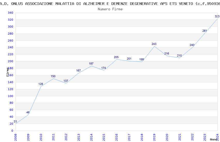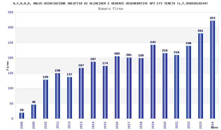 | Anno | Firme | Importi | Media | Naz. | Reg. | Prov. | Comu. |