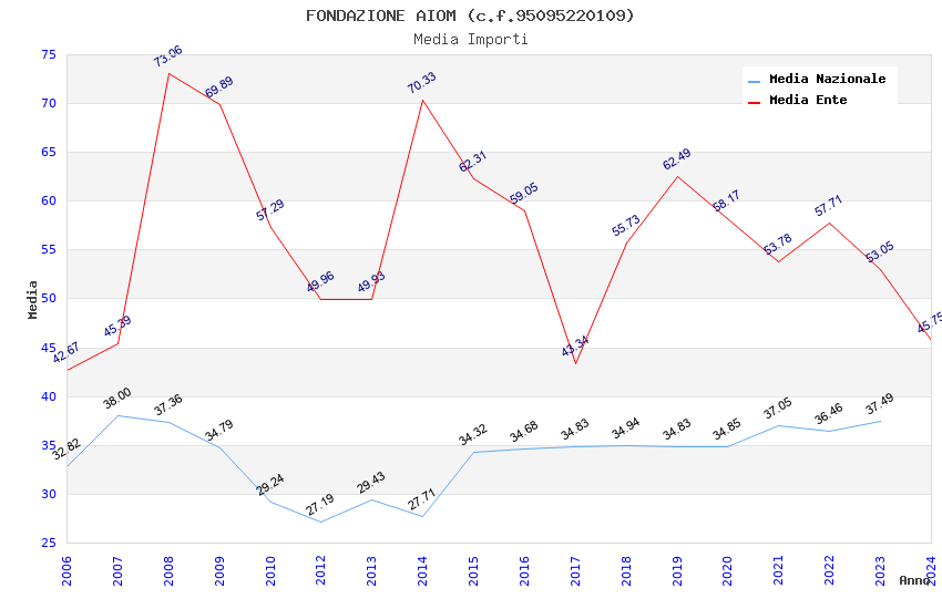 | Anno | Firme | Importi | Media | Naz. | Reg. | Prov. | Comu. |