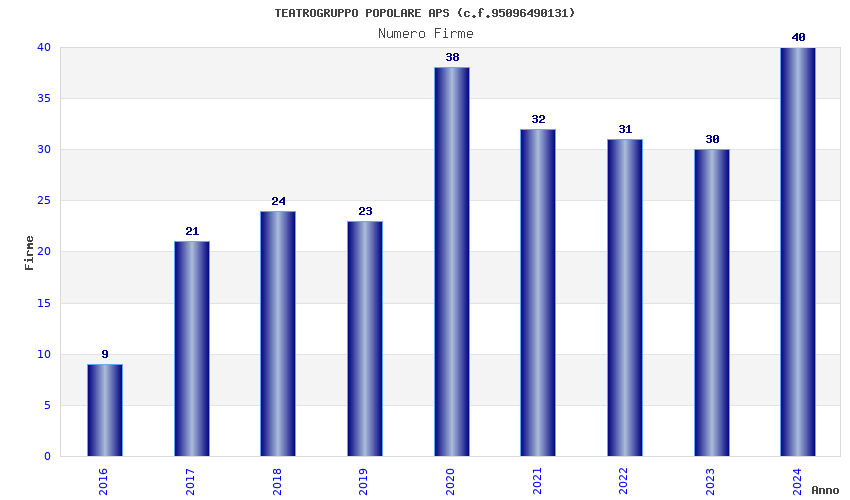 | Anno | Firme | Importi | Media | Naz. | Reg. | Prov. | Comu. |