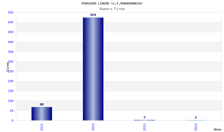 | Anno | Firme | Importi | Media | Naz. | Reg. | Prov. | Comu. |