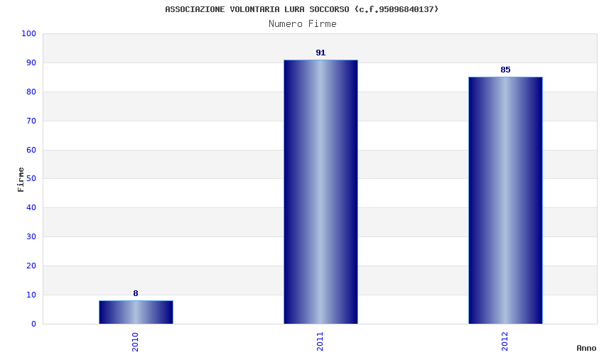 | Anno | Firme | Importi | Media | Naz. | Reg. | Prov. | Comu. |