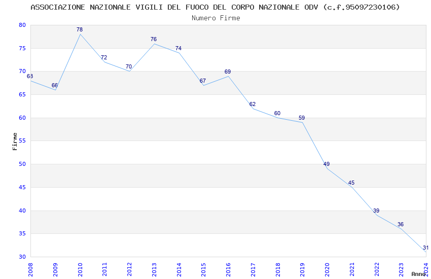 | 2010 | 78 | 1.674,70 | 21,47 | 18.344 | 542 | 348 | 269 |