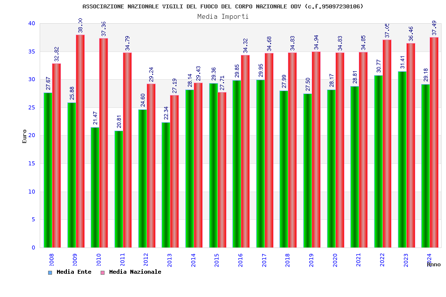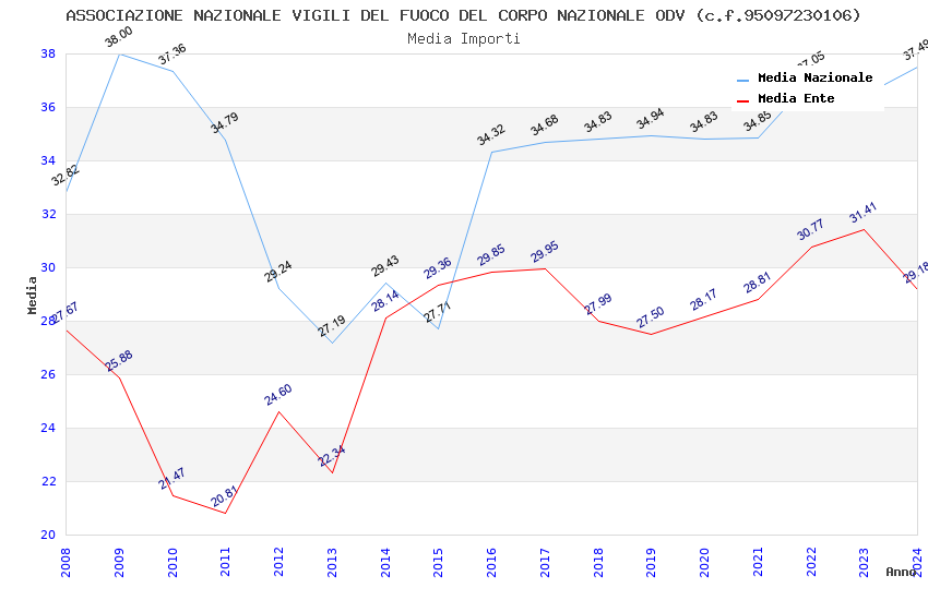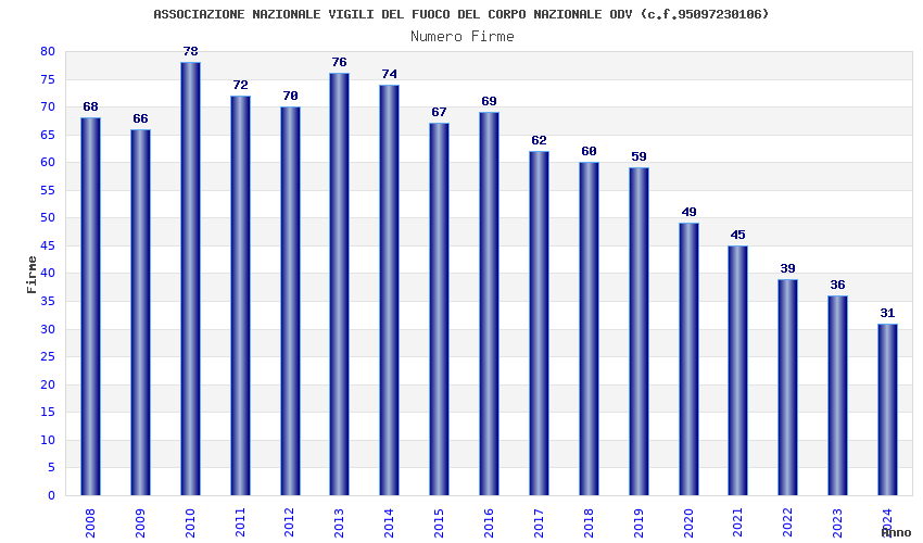 | Anno | Firme | Importi | Media | Naz. | Reg. | Prov. | Comu. |