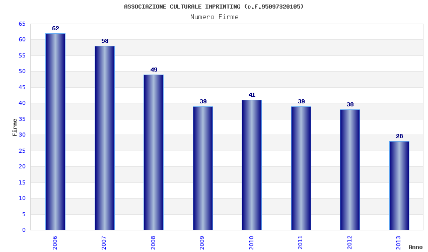 | Anno | Firme | Importi | Media | Naz. | Reg. | Prov. | Comu. |