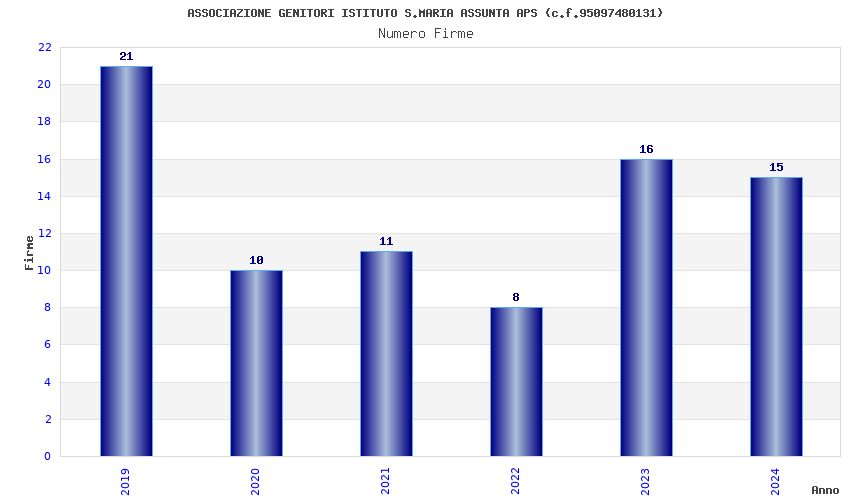 | Anno | Firme | Importi | Media | Naz. | Reg. | Prov. | Comu. |