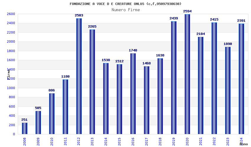 | Anno | Firme | Importi | Media | Naz. | Reg. | Prov. | Comu. |