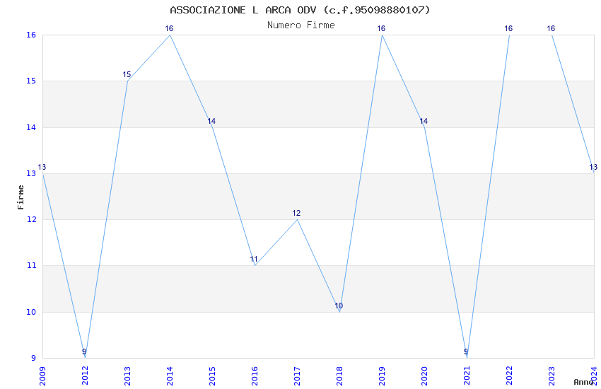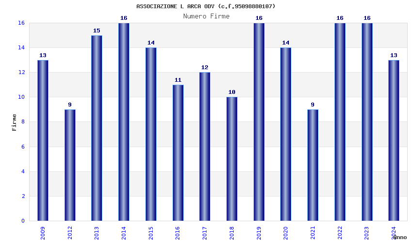 | Anno | Firme | Importi | Media | Naz. | Reg. | Prov. | Comu. |