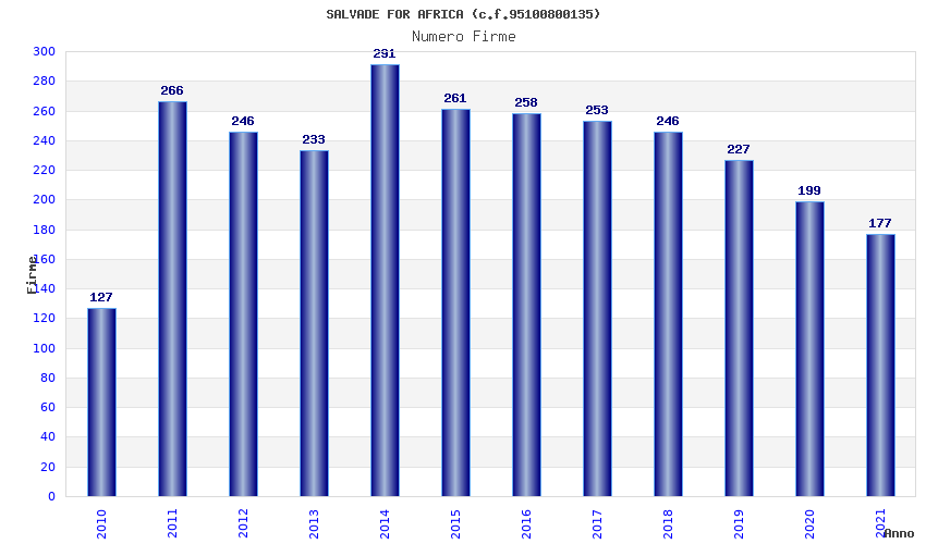 | Anno | Firme | Importi | Media | Naz. | Reg. | Prov. | Comu. |