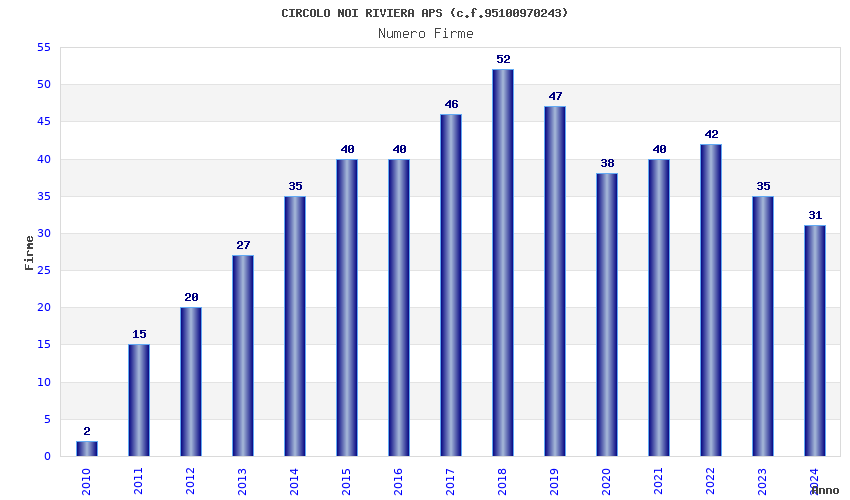 | Anno | Firme | Importi | Media | Naz. | Reg. | Prov. | Comu. |