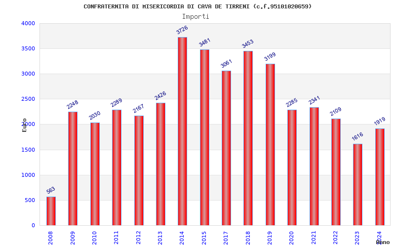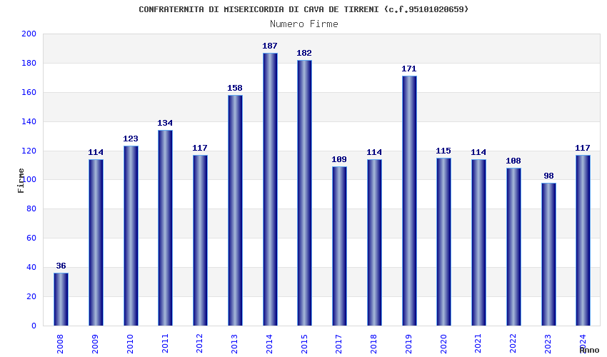 | Anno | Firme | Importi | Media | Naz. | Reg. | Prov. | Comu. |