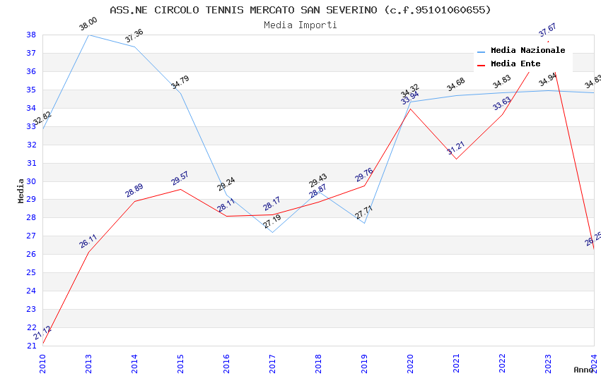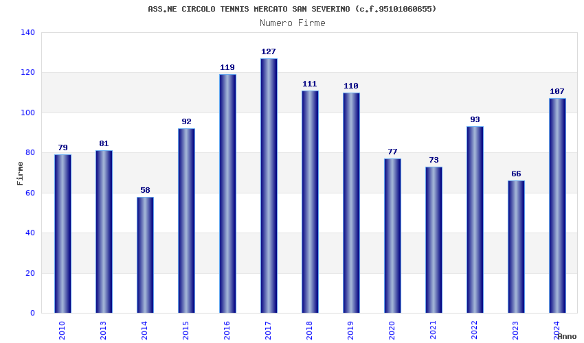 | Anno | Firme | Importi | Media | Naz. | Reg. | Prov. | Comu. |