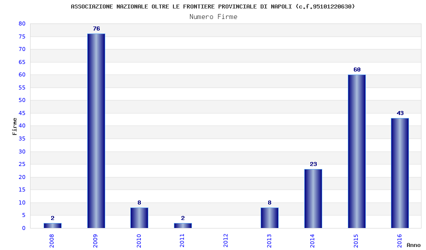 | Anno | Firme | Importi | Media | Naz. | Reg. | Prov. | Comu. |