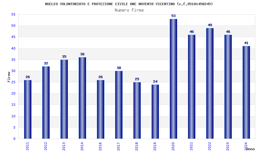 Anno Firme Importi Media Naz. Reg. Prov. Comu.