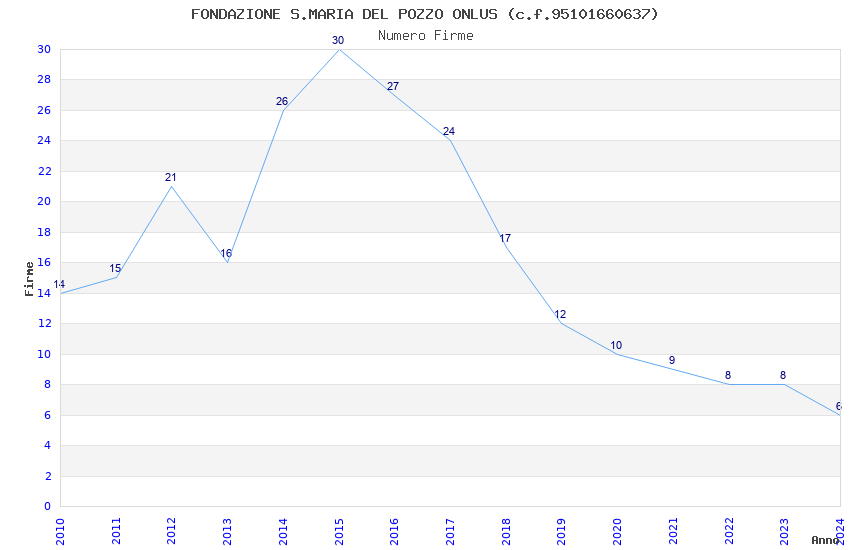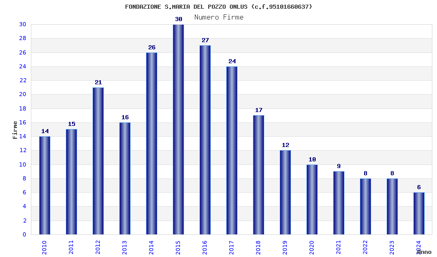 | Anno | Firme | Importi | Media | Naz. | Reg. | Prov. | Comu. |