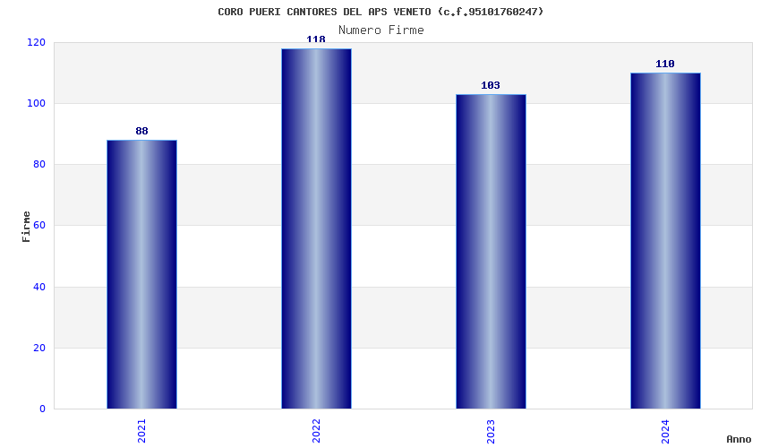 | Anno | Firme | Importi | Media | Naz. | Reg. | Prov. | Comu. |
