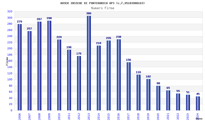 | 2024 | 45 | 1.181,61 | 26,26 | 34.203 | 6.943 | 778 | 6 |