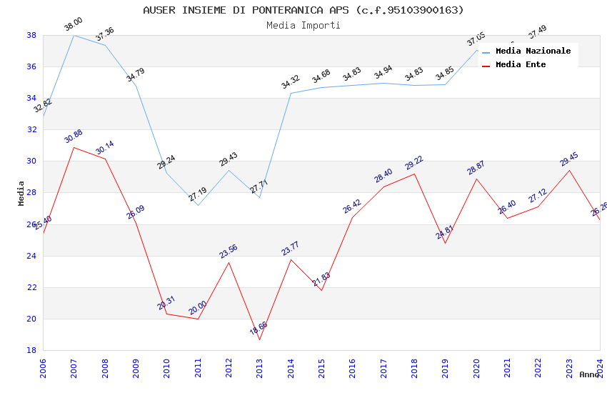 | Anno | Firme | Importi | Media | Naz. | Reg. | Prov. | Comu. |