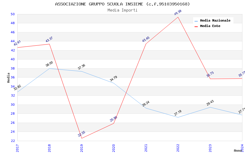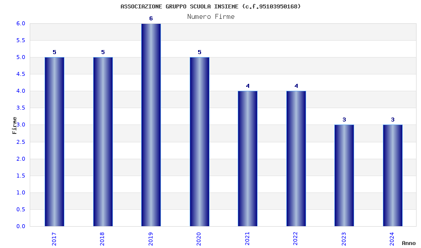 | Anno | Firme | Importi | Media | Naz. | Reg. | Prov. | Comu. |