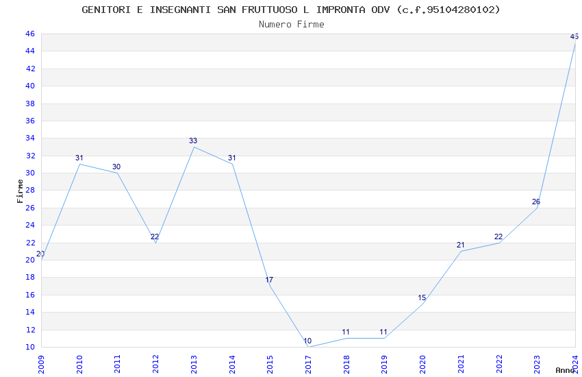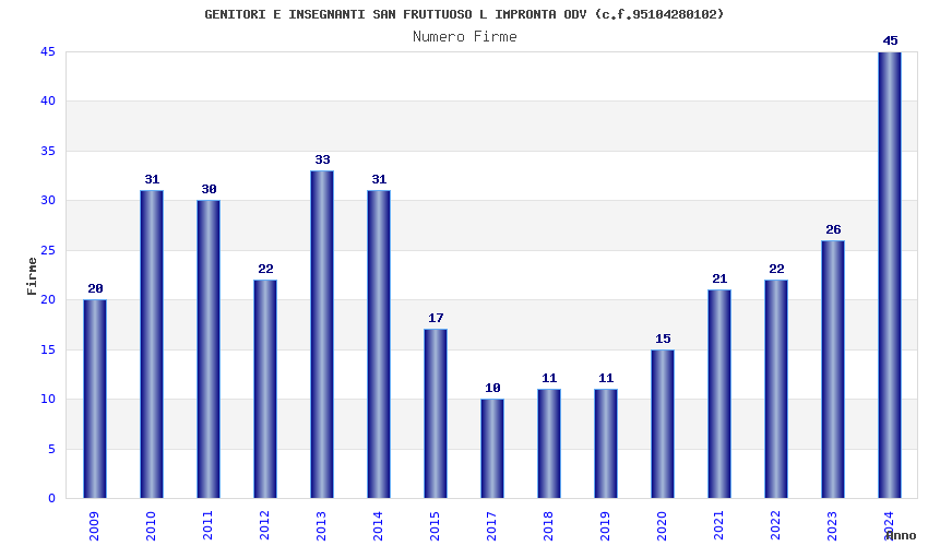 | Anno | Firme | Importi | Media | Naz. | Reg. | Prov. | Comu. |