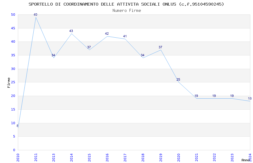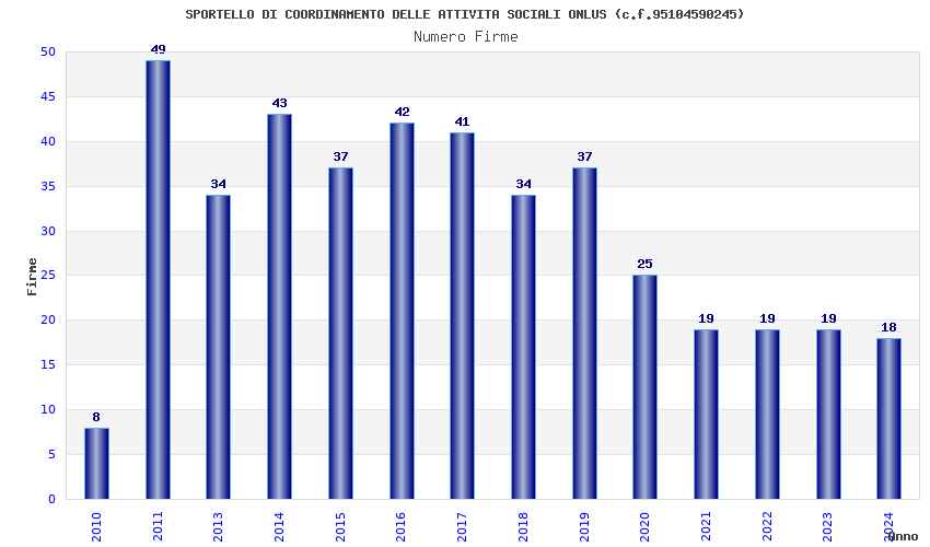 | Anno | Firme | Importi | Media | Naz. | Reg. | Prov. | Comu. |