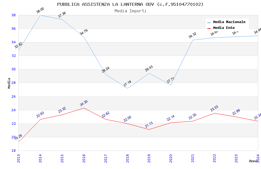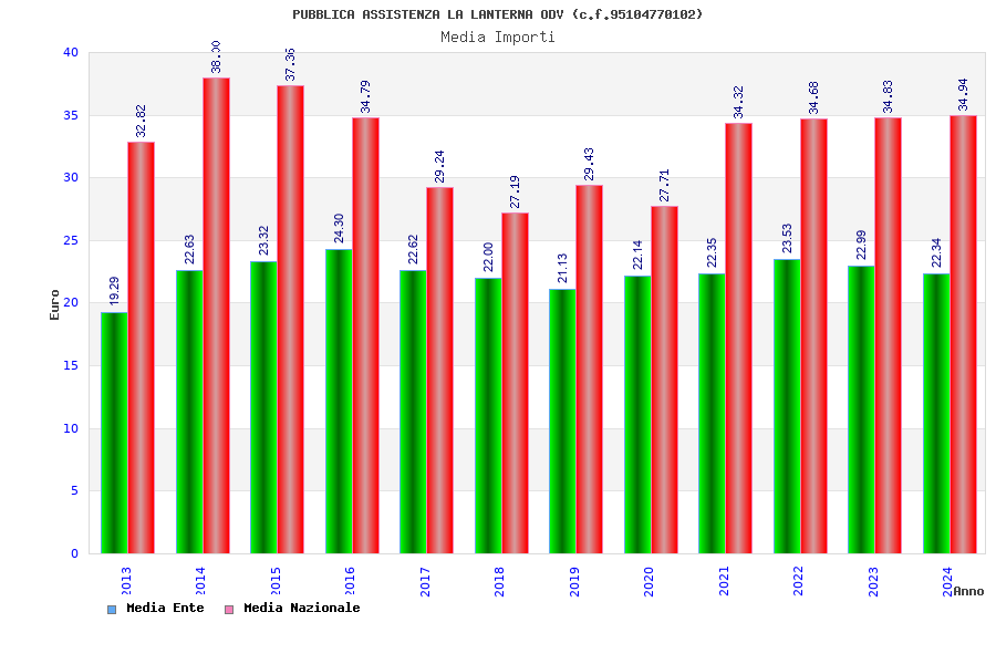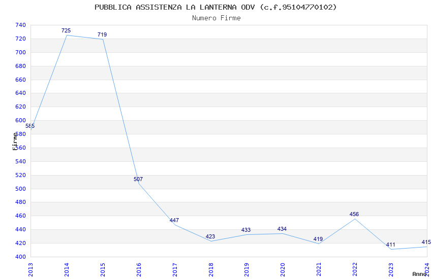| Anno | Firme | Importi | Media | Naz. | Reg. | Prov. | Comu. |