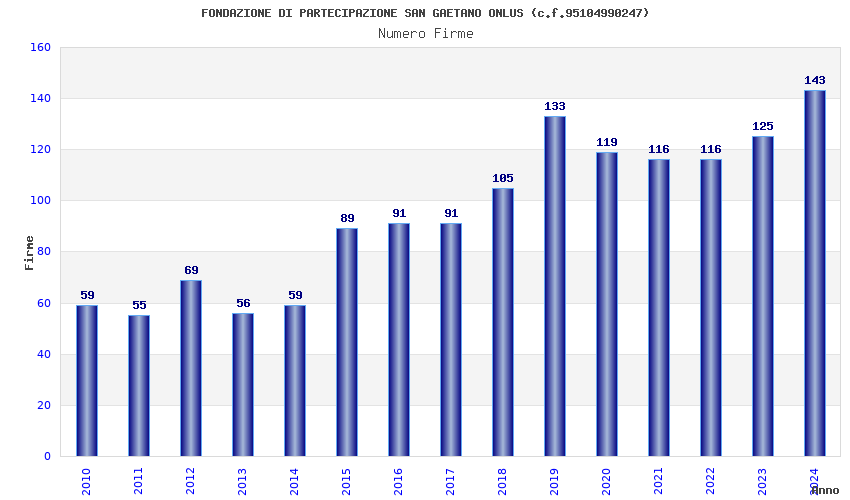 | Anno | Firme | Importi | Media | Naz. | Reg. | Prov. | Comu. |