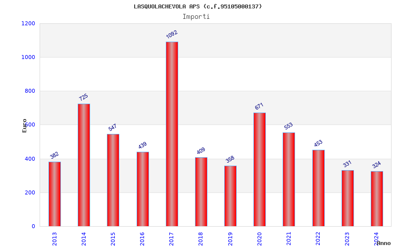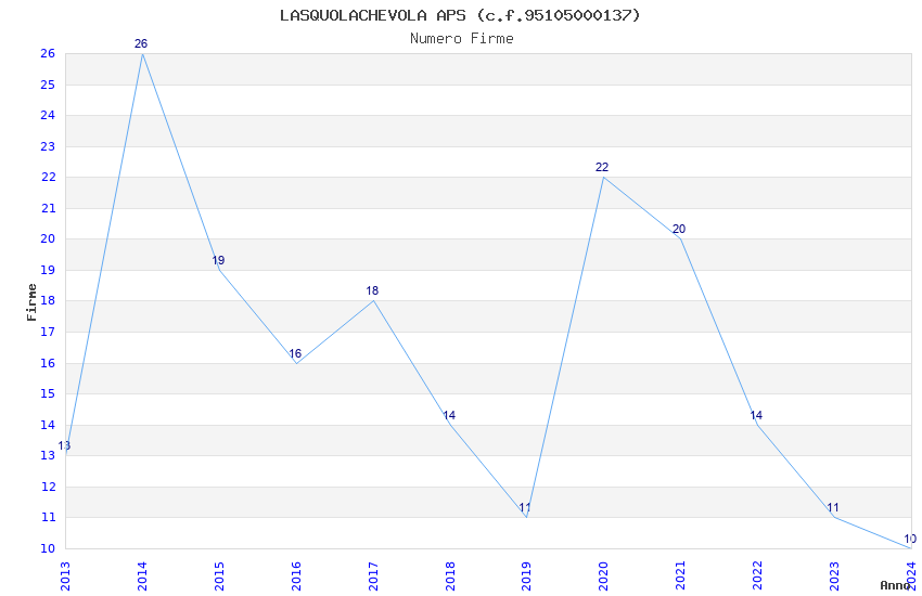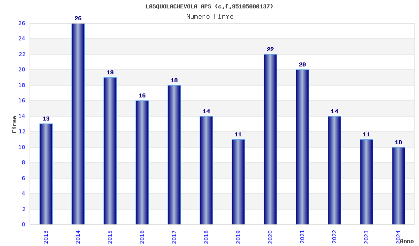 | Anno | Firme | Importi | Media | Naz. | Reg. | Prov. | Comu. |