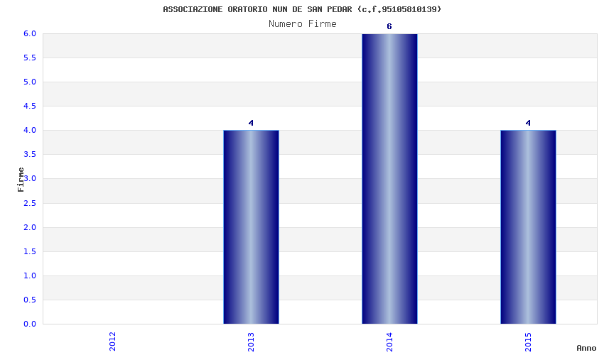 | Anno | Firme | Importi | Media | Naz. | Reg. | Prov. | Comu. |