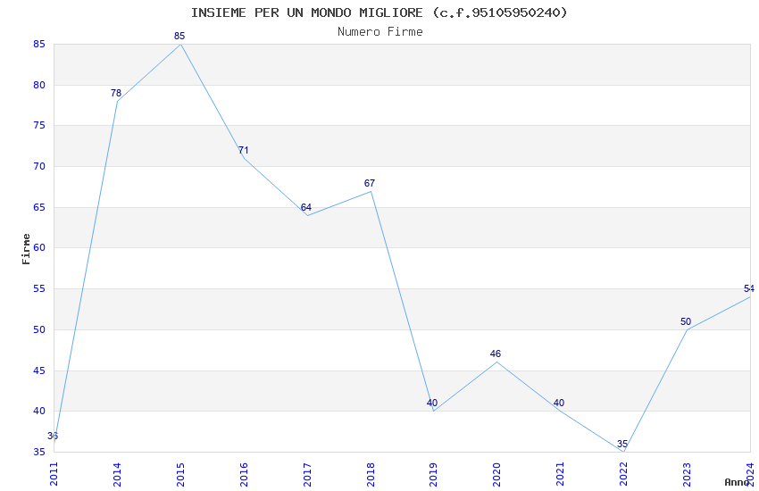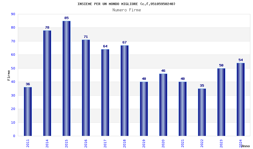 | Anno | Firme | Importi | Media | Naz. | Reg. | Prov. | Comu. |