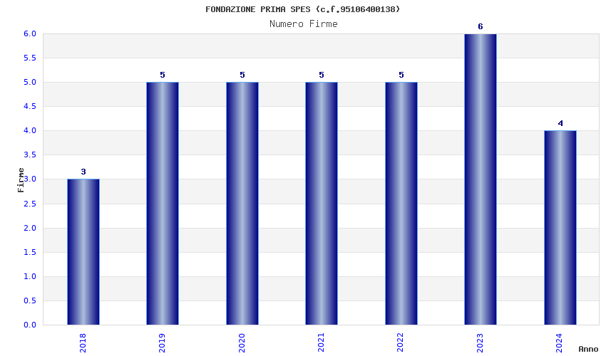 | Anno | Firme | Importi | Media | Naz. | Reg. | Prov. | Comu. |