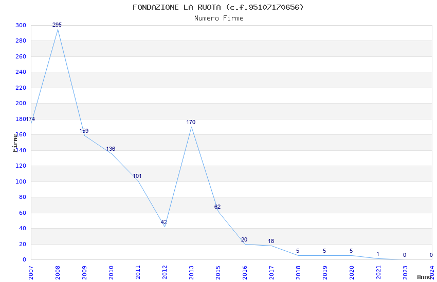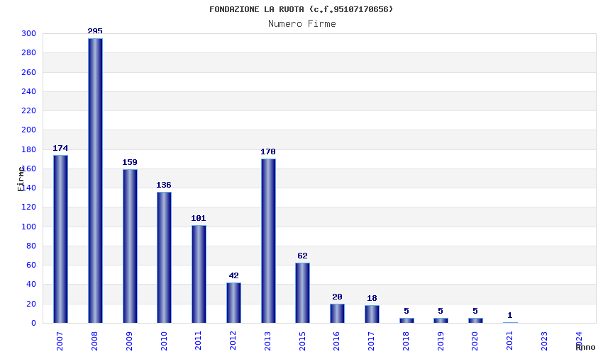 | Anno | Firme | Importi | Media | Naz. | Reg. | Prov. | Comu. |